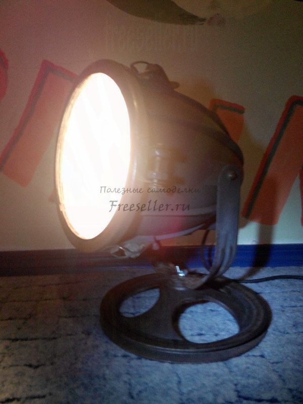 После нашёл еще прожектор. Уже для освещения футбольных полей. И собрал напольно-настольный светильник.