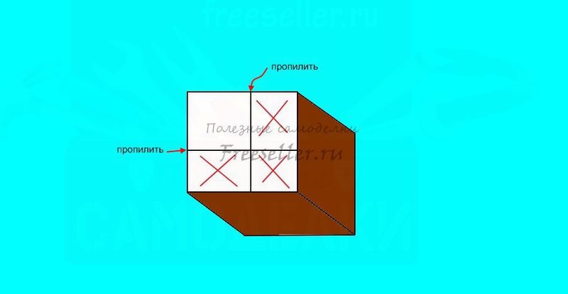 Если нужно "приделать" ещё один брусок, то нужно оставить у бруска четвёртую часть и длинной по толщине к соединяемым брускам.