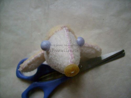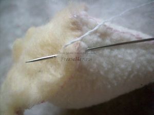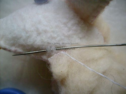 4. Сшиваем детали головы. Набиваем её ватой и зашиваем наглухо.