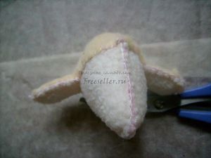 Пришиваем ножки к обеим половинкам туловища по разметке.