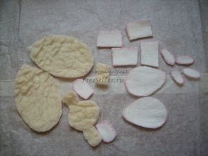 Выкраиваем детали. Для набивки используем вату (например, из старого тюфяка или из подкладки старого пальто).