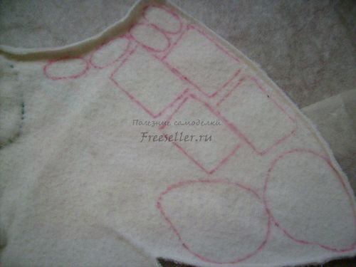 2. Вычерчиваем на флисе все детали, кроме туловища, накладки и хвоста. Их будем кроить из овчины.