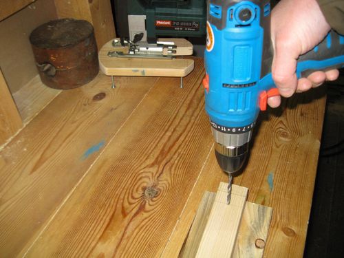 По обеим сторонам бруска я просверлил сквозные отверстия, сверлом диаметром 4 мм.