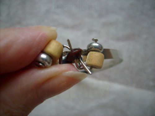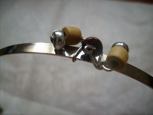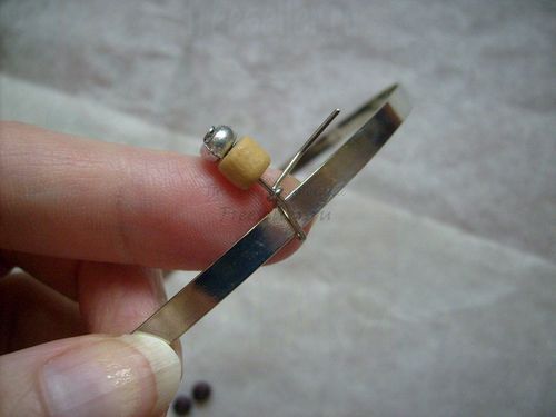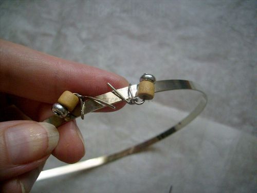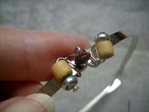 3. Загибаем верхушку гвоздика с бусинами поверх ободка. Второй гвоздик крепим симметрично таким же образом.