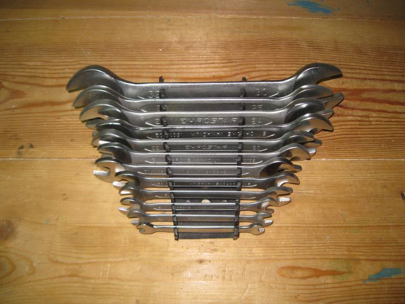 Раньше этот набор висел у меня на стене в мастерской. Однако практика показала, что при таком размещении и на таком держателе, этими ключами не очень удобно пользоваться.
