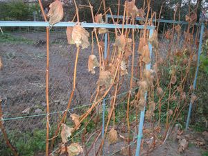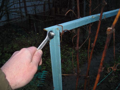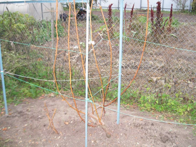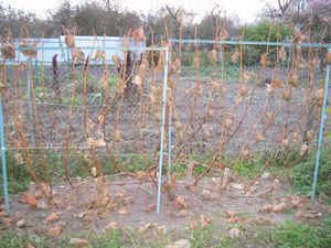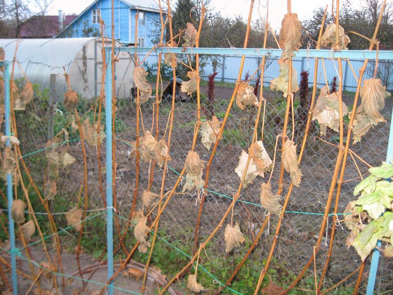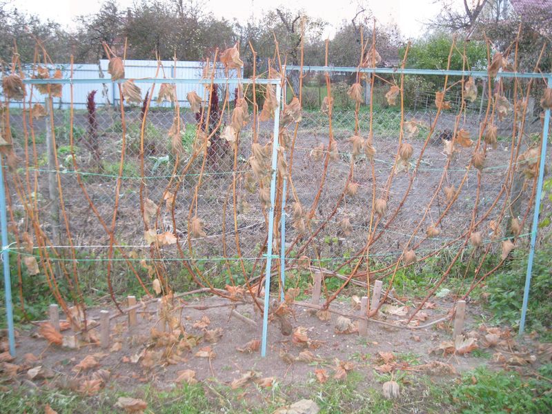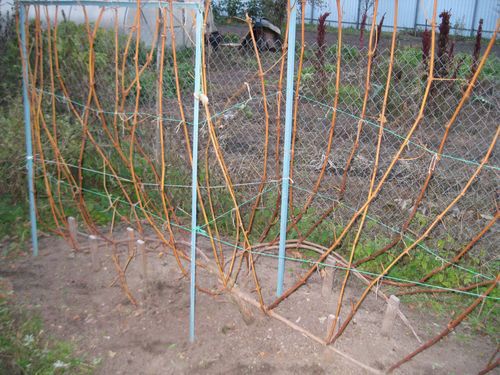 Затем отвязываем все лозы от шпалер, снимаем сами шпалеры и разбираем их стойки.