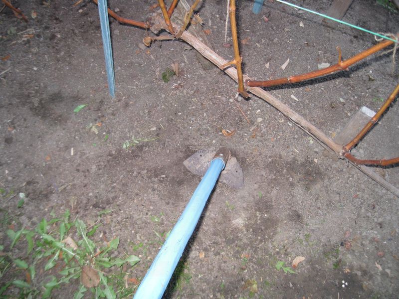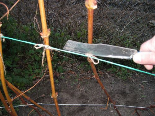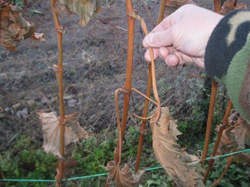 Убираем также деревянные колышки, к которым были привязаны горизонтальные лозы.