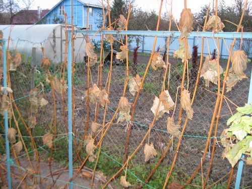 Теперь мы можем оставить наш виноградный куст в таком виде еще на две, три недели до наступления устойчивых холодов и заморозков по ночам.