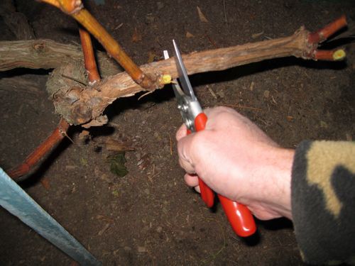 Затем отрезаем горизонтальные лозы, непосредственно из которых росли срезанные нами вертикальные.
