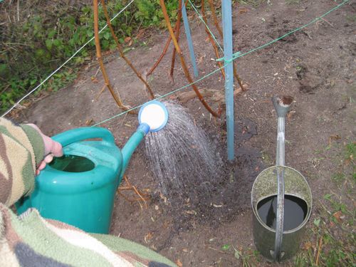 За это время, как правило, во второй половине октября, необходимо произвести предзимний влагозарядковый полив нашего куста.
