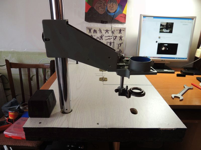 На данный момент стол стоит на тумбочке, как только закончим ремонт в квартире, я ему выделю специальное место.
