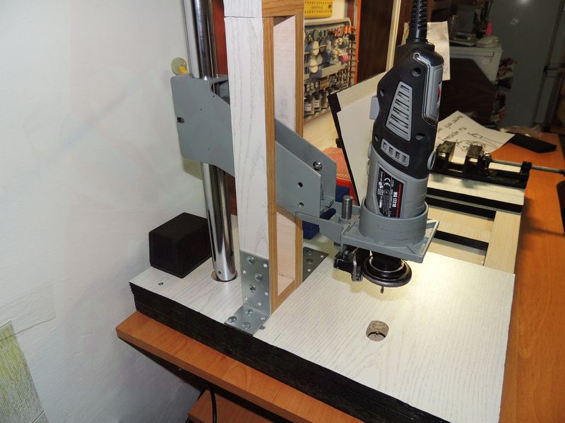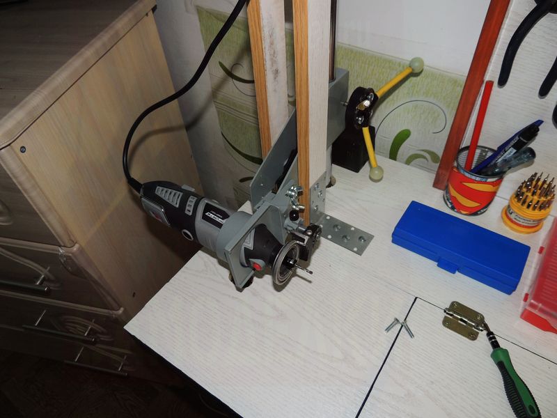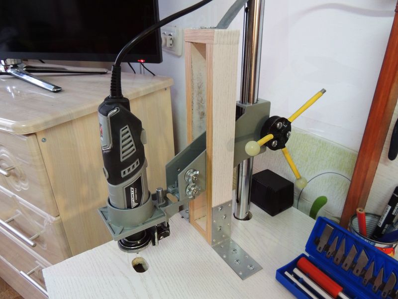 Граверу я добавил еще несколько положений на стойке, то есть его можно ставить вертикально насадкой вверх, а также горизонтально, для этого я просверлил два отверстия, нарезал резьбу, и закрутил 2 болта.