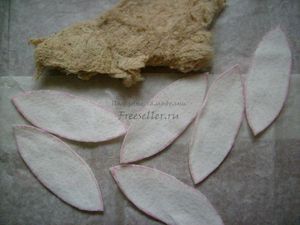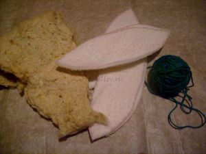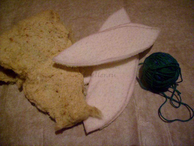 3. Вырезаем клинья. Готовим вату для набивки шара (например, из старого тюфяка). Сшивать клинья будем нитью зелёного цвета.