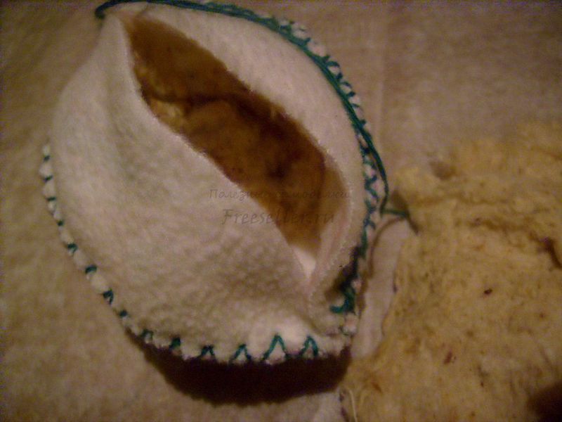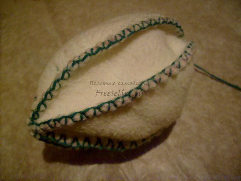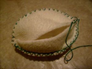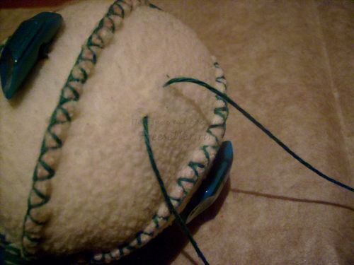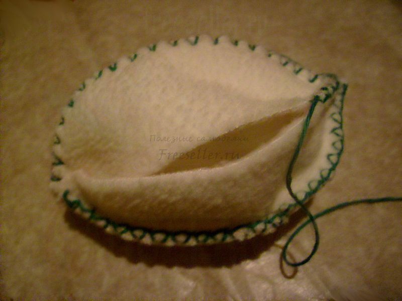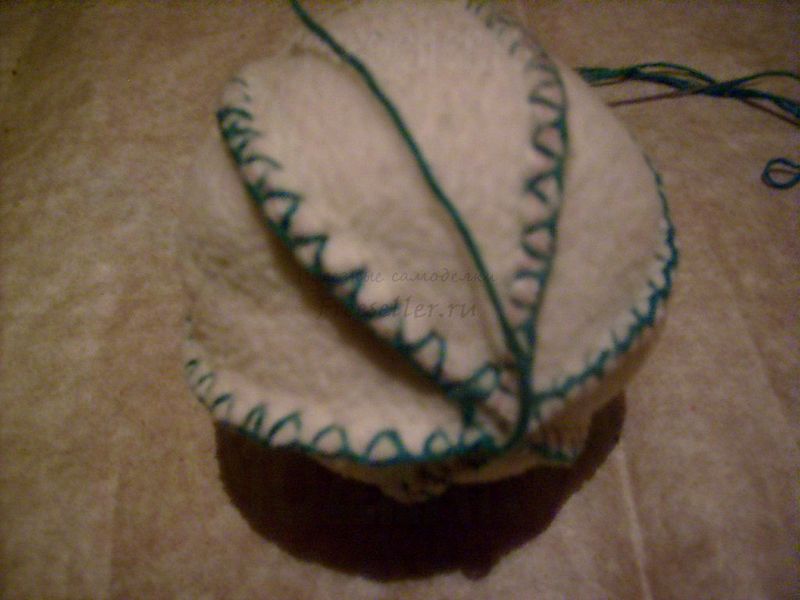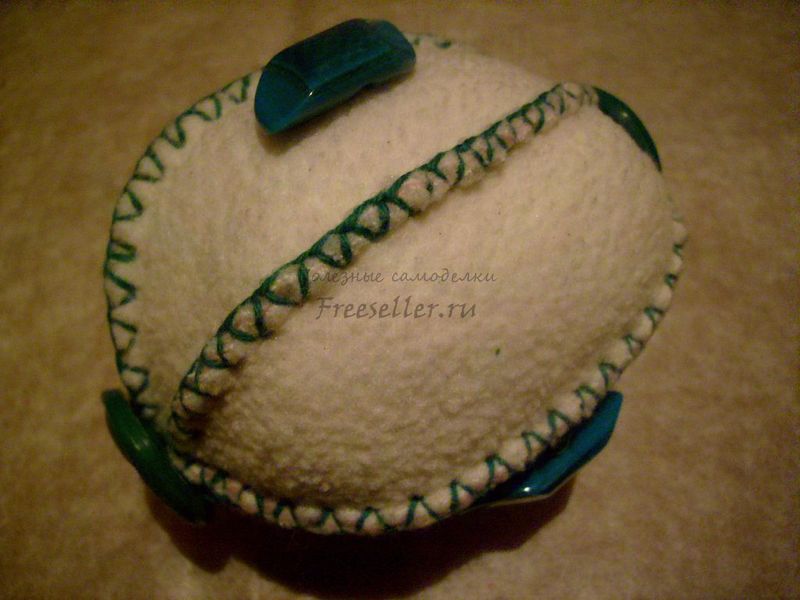 5. Оставив зазор в последнем шве, набиваем шар ватой. Заканчиваем шов и закрепляем нить.