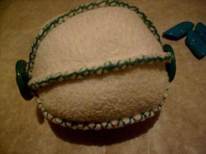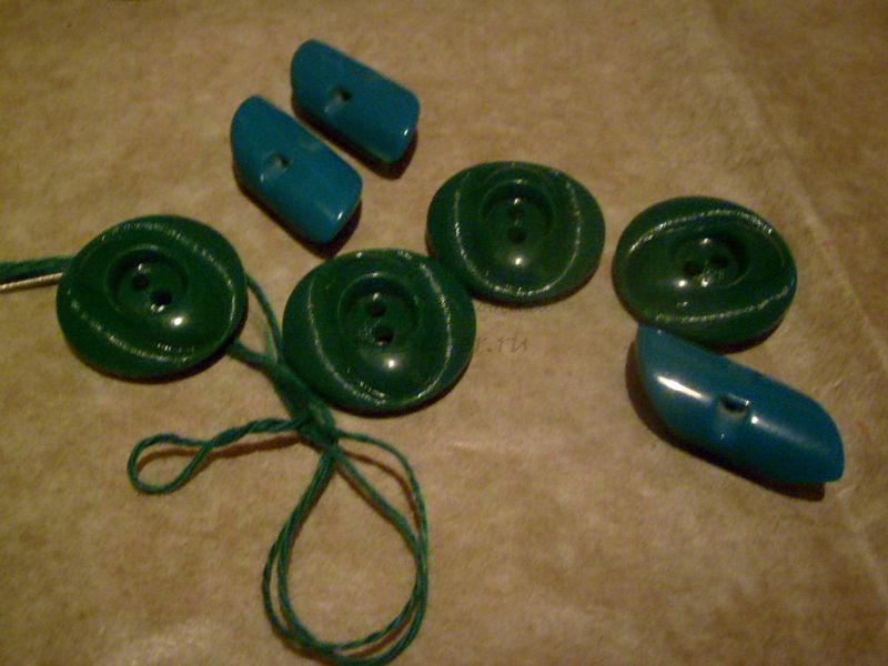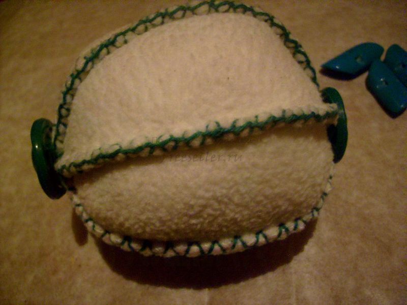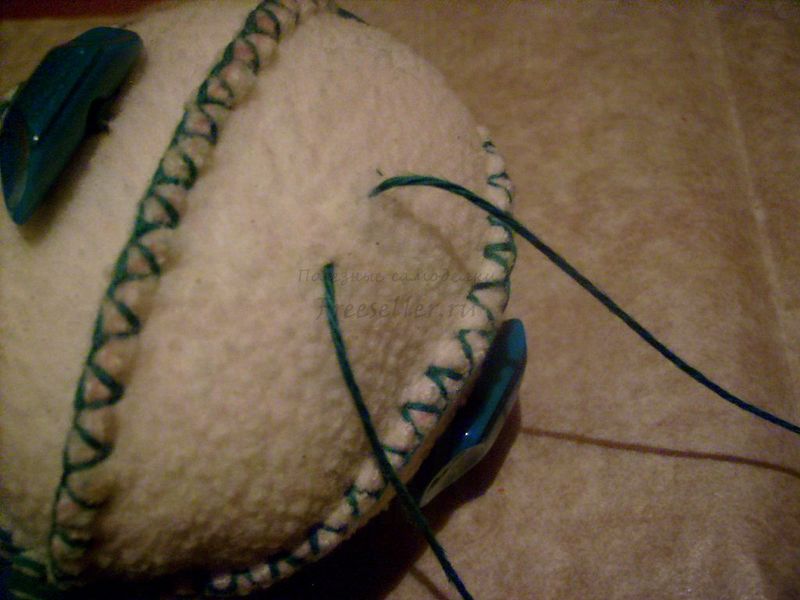 Нашиваем две крупные плоские пуговицы сверху и снизу.