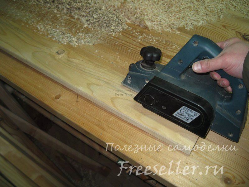 Сначала я снял электрорубанком широкую фаску с одной стороны доски, то есть как бы «заострил» у нее кромку.
