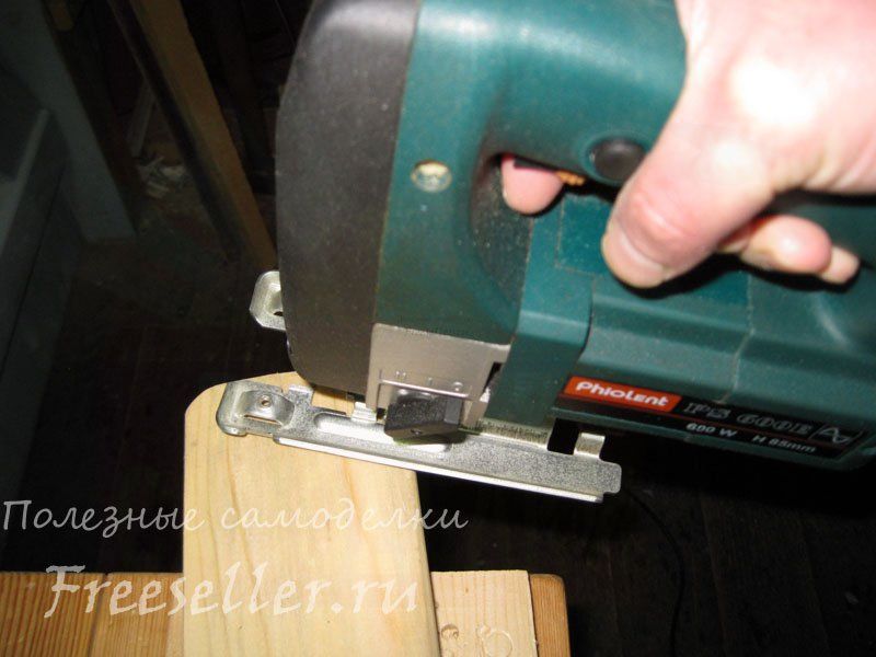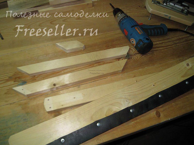 Затем, разметив на этой доске заготовку рабочей части скребка длиной 70 см, отпилил у нее края электролобзиком, попутно несколько закруглив их.