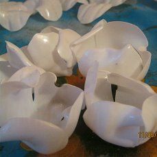 Вот такие у нас получились заготовочки для лепестков роз, в серединке заготовку старайтесь сделать как можно плотнее к середине, чтобы не было видно, потом проволоку, на которую мы их насадим.