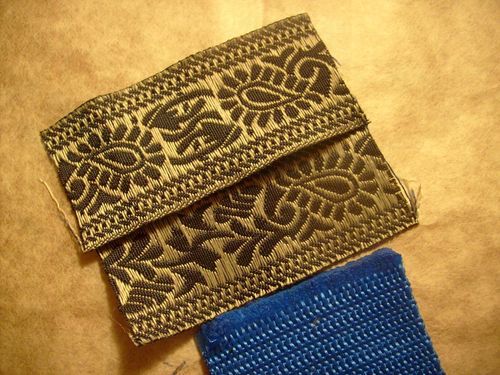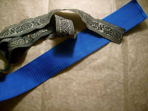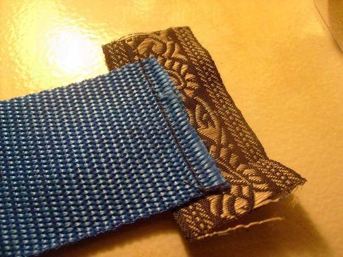 1. Отрезаем два фрагмента тесьмы по ширине узких срезов полоски из стропы с запасом в 1 см с каждого края.