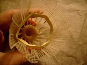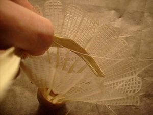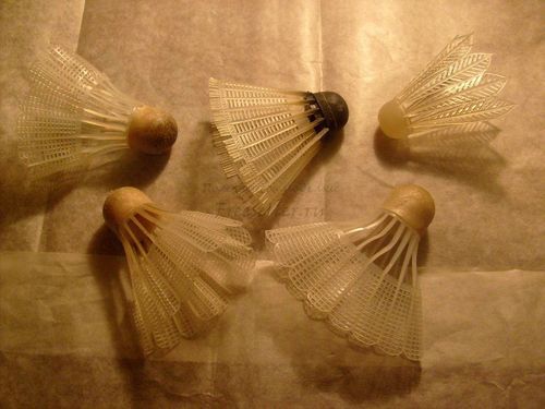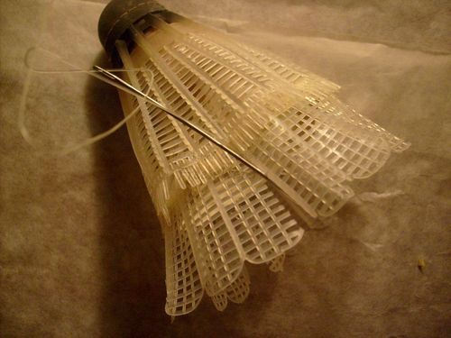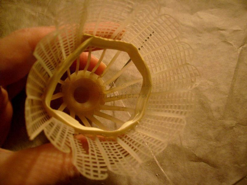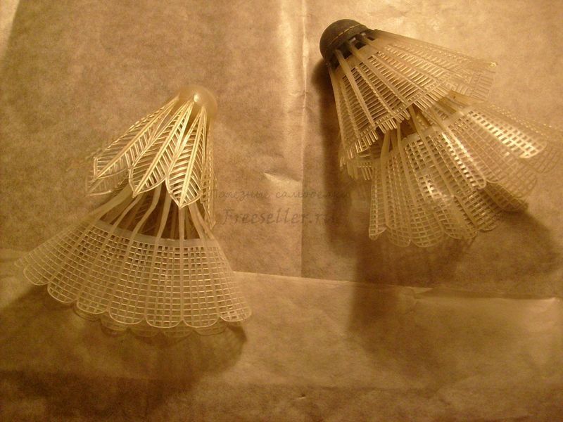 Если у вас завалялись сломанные воланчики для бадминтона, не спешите их выбрасывать. Из них получится вполне новогодняя ёлочка!