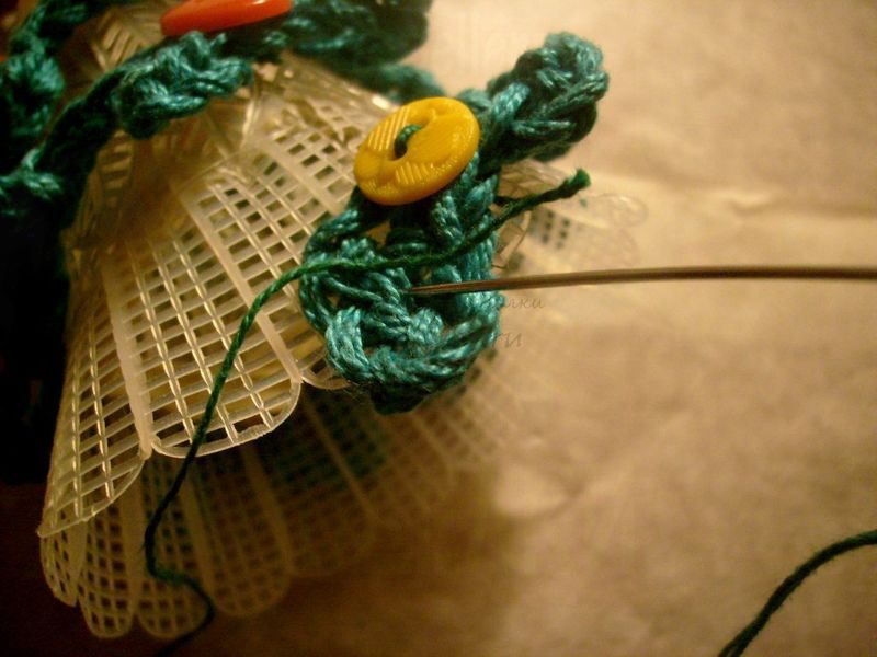 4. Надев меньший воланчик на больший, тоже скрепляем их между собой леской.