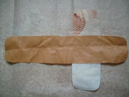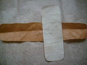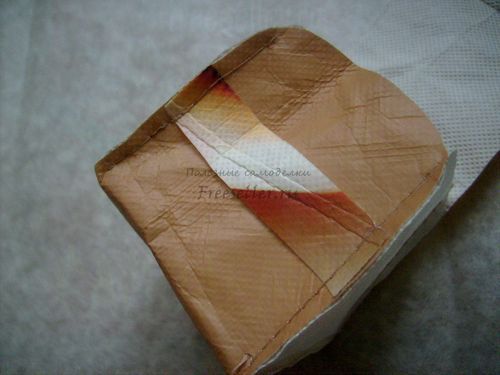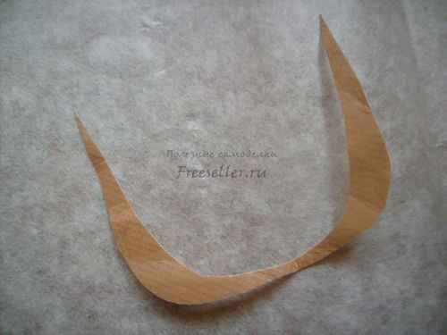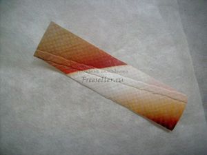6. Немного сужаем клапан - прямоугольник 6 на 5 см. Сложив его вдоль пополам, срезаем немного по внешнему контуру.