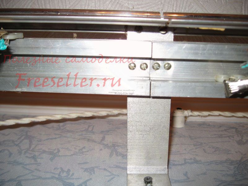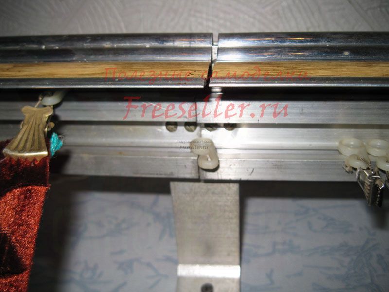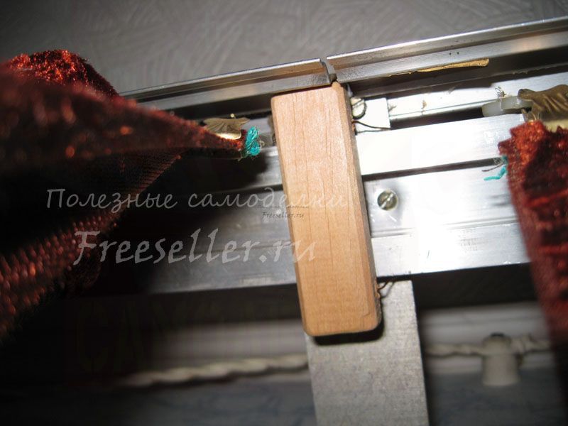 Действительно, ведь на каждой половине карниза используется своя штора, крючки которой перемещаются только по своей направляющей. И нет никакой необходимости, чтобы штора переезжала на «чужую» половину карниза. Поэтому вполне можно сделать небольшую накладку-ограничитель, чтобы крючки просто не могли попасть на стыки направляющих.