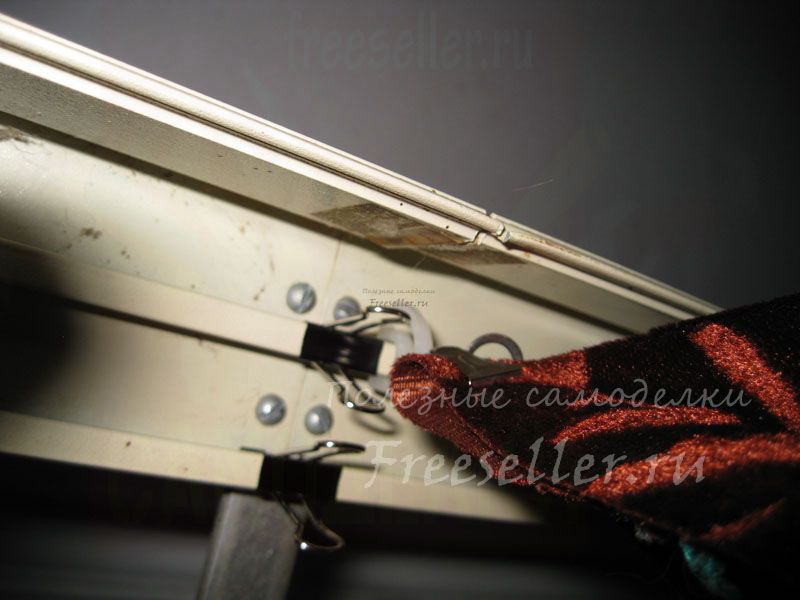 Однако для карниза, находящегося в другой комнате, канцелярские зажимы не подошли, поскольку направляющие там были значительно шире.
