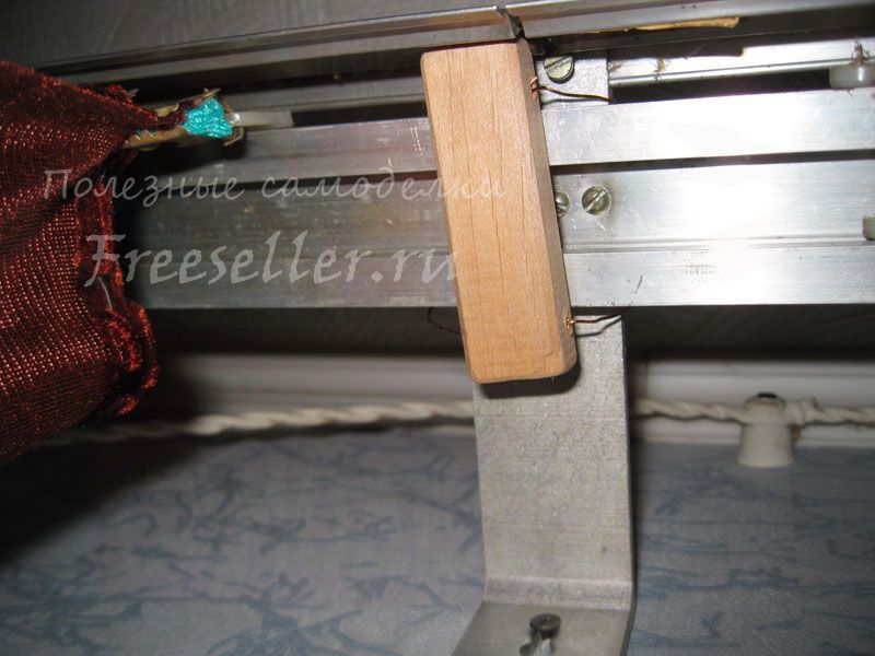 Очень простое в изготовлении приспособление-ограничитель, крепящееся к месту стыка направляющих, по которым перемещаются крючки карниза для штор. Благодаря такому приспособлению, крючки, на которых повешены шторы, не попадают на стыки направляющих и не застревают на них.