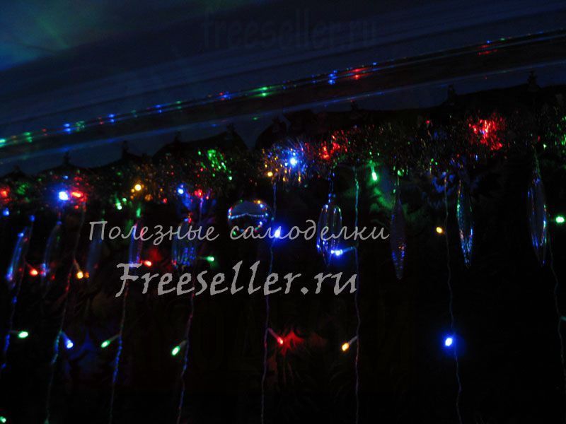 И вот так выглядят окно и карниз в темноте, при включенных гирляндах.
