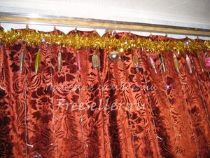 А чтобы не было видно самой деревянной планки подвеса, задрапировал ее мишурой.