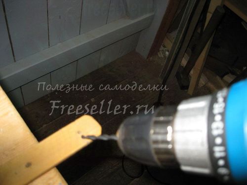 И закрепил их на краях планки-подвеса, предварительно просверлив под них отверстия.