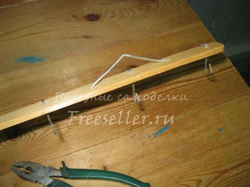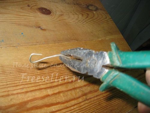 Теперь делаем крючки из небольших отрезков проволоки, сгибая их пассатижами. Причем совсем необязательно, чтобы они были красивыми и ровными, так как их все равно не будет видно.
