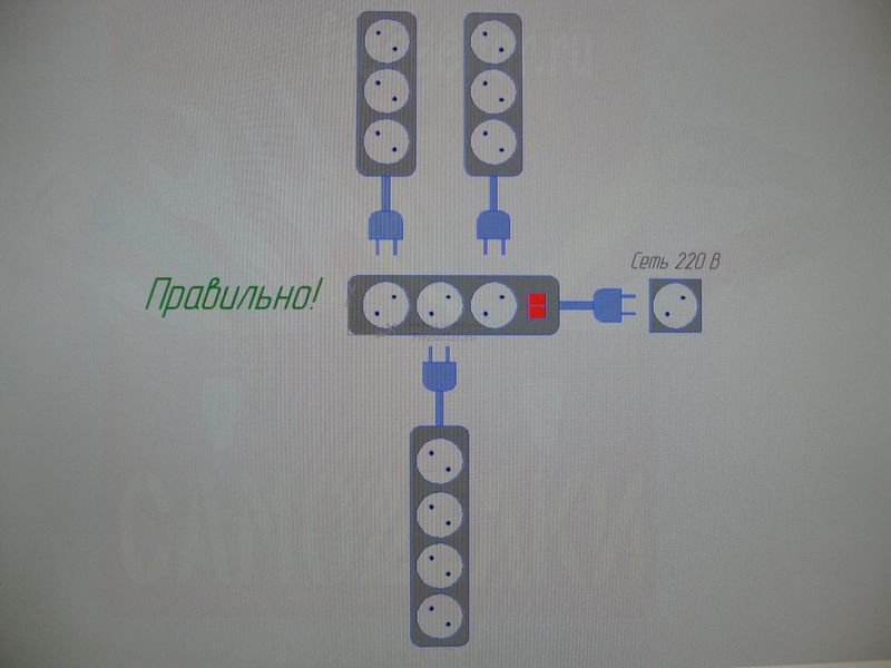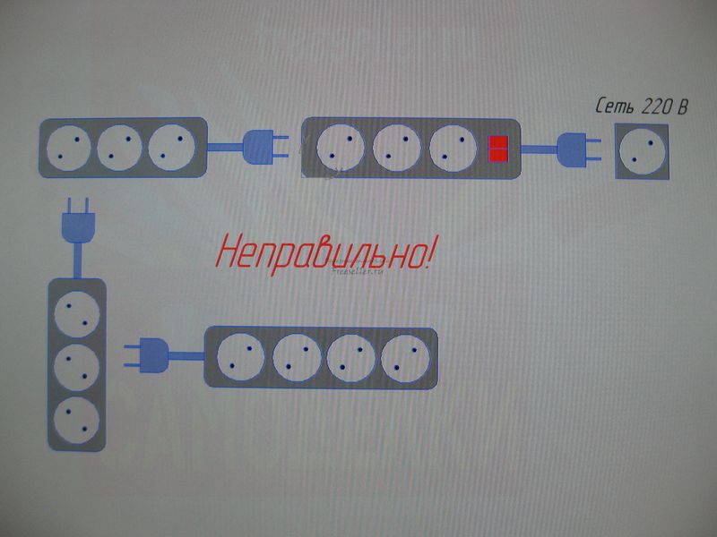 Это нужно для того, чтобы всю основную нагрузку, брал на себя конечный удлинитель, а не другие удлинители.