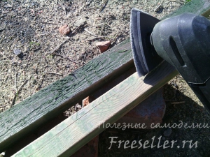 Так как доски изрядно были потрепаны, то сначала я обработал их при помощи МФУ. Кстати, немножко повторюсь, но все же, при помощи данного МФУ и шлифовальной насадки, на которую липучками клеится наждачная бумага, очень удобно обрабатывать древесину, по сравнению с ручной обработкой. Времени на одну и ту же работу затрачивается намного меньше, а результат получается гораздо лучше.