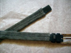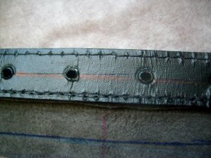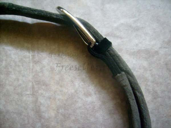 6. Всё, ремень готов. Проделывать отверстия в кожаной накладке не нужно - штырёк пряжки легко проходит между стыками полосок.