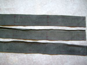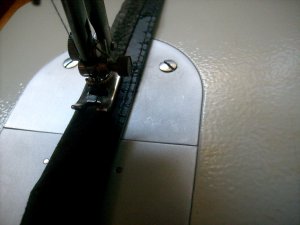 5. Вторую полоску пришиваем с другого длинного края таким же образом. Подтягиваем её сгиб вплотную к сгибу первой, не оставляя между ними видимого зазора.