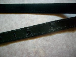 1. Наша задача - закрыть потрескавшиеся края и тыльную сторону ремня. Измеряем его длину, ширину и толщину - 100 см на 2 см на 0,3 см. Выкраиваем две полоски длиной 95 см и шириной 3 см. Нам пришлось составить их из шести коротких фрагментов.