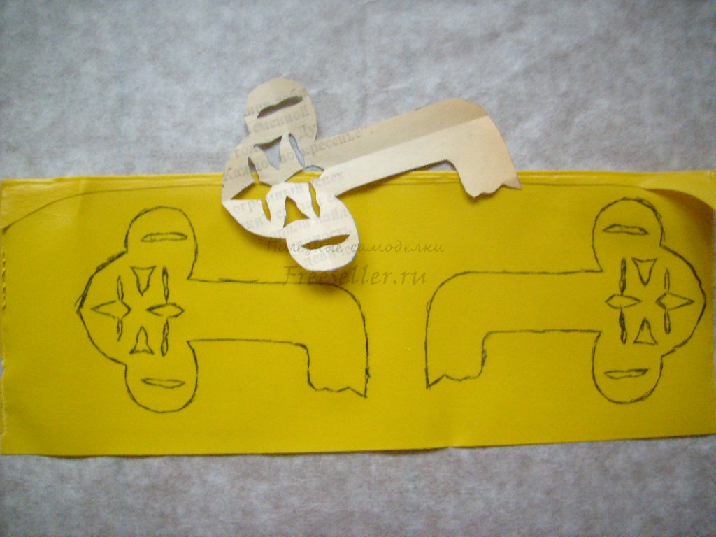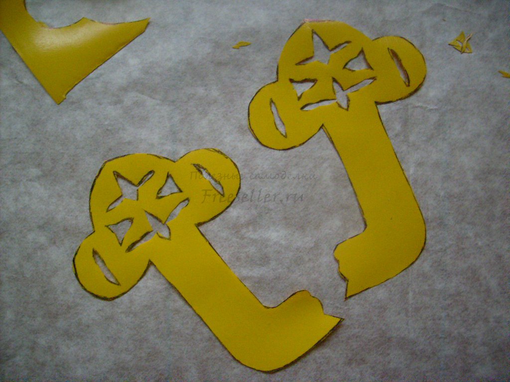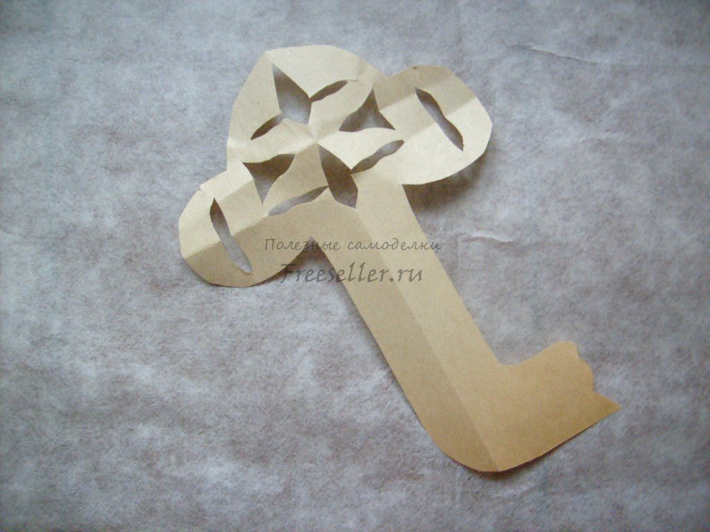 1. Вырезаем из бумаги шаблон ключа - по принципу бумажной снежинки, складывая бумагу в нужных местах вдоль и поперёк.