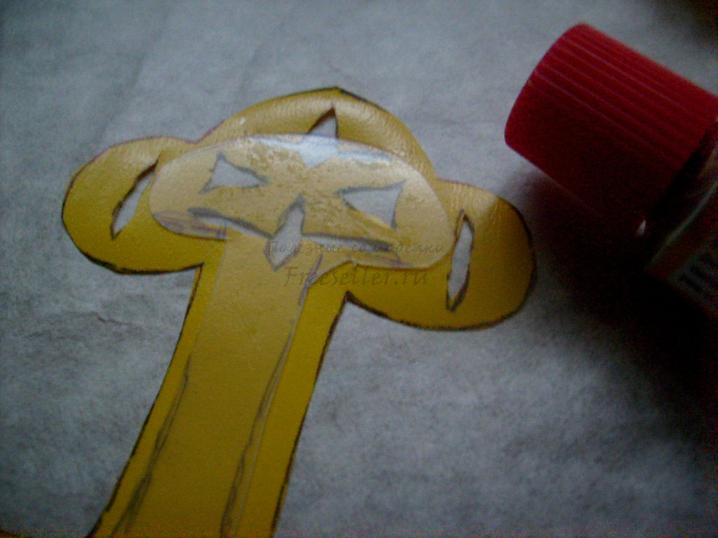 5. Промазываем клеем перемычки вокруг прорезей одной из частей и приклеиваем к ней вкладыш.