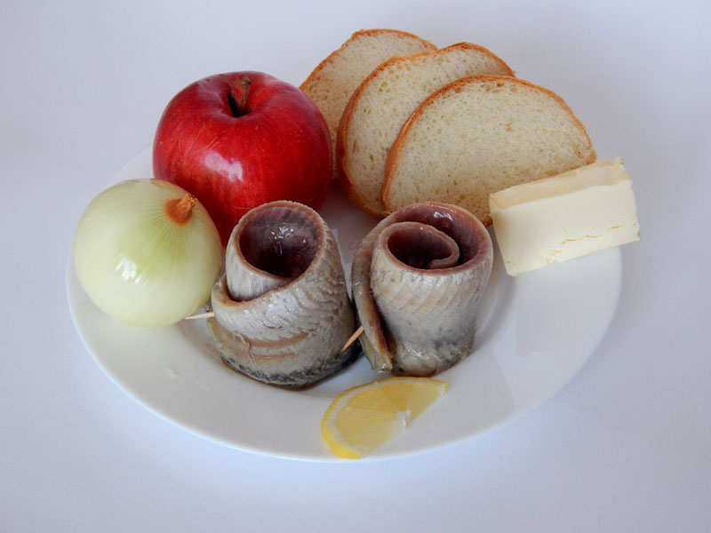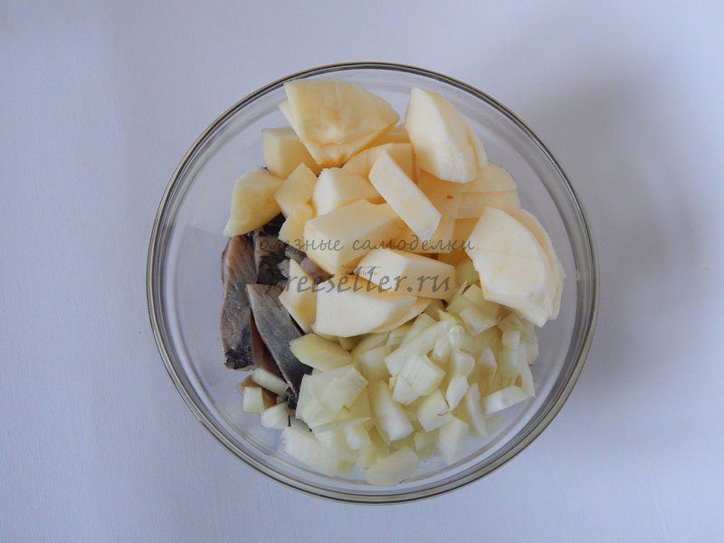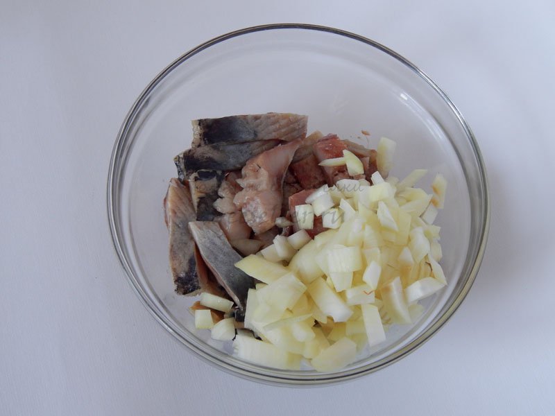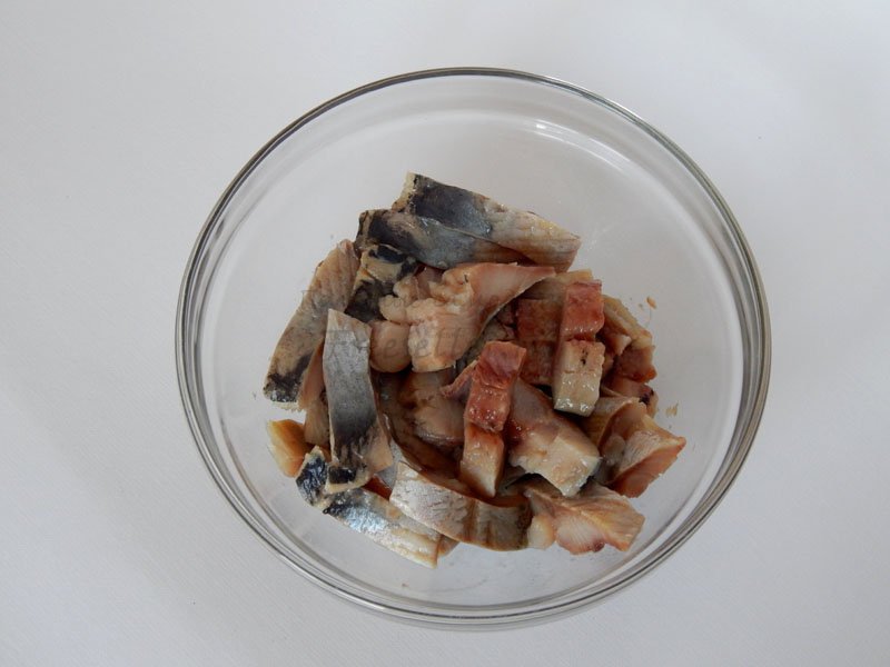 2. Нарезать филе сельди. Если сельдь очень соленая, то ее можно замочить в молоке на 20-30 минут.