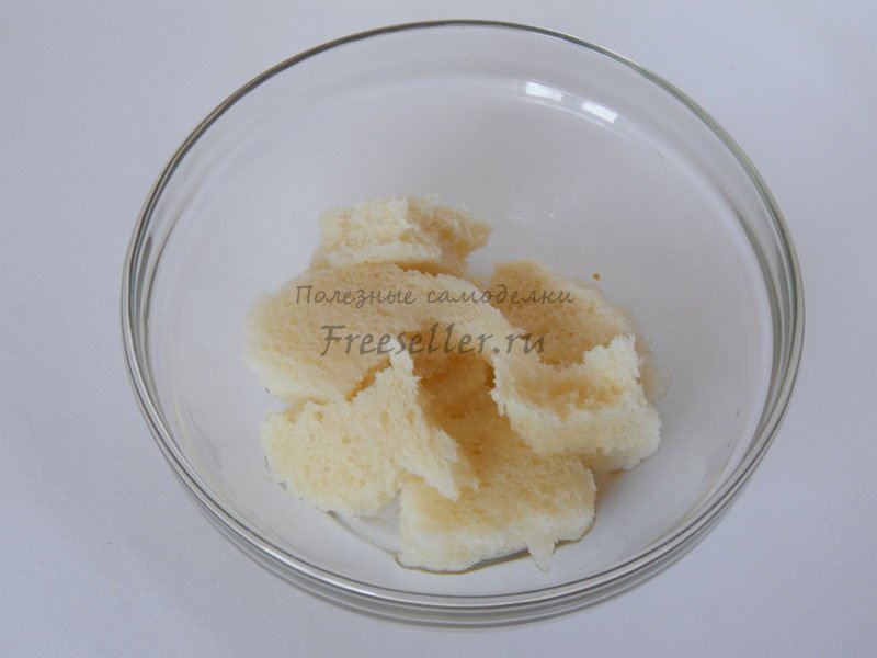 1. Хлеб очистить от корки и залить теплой кипяченой водой.