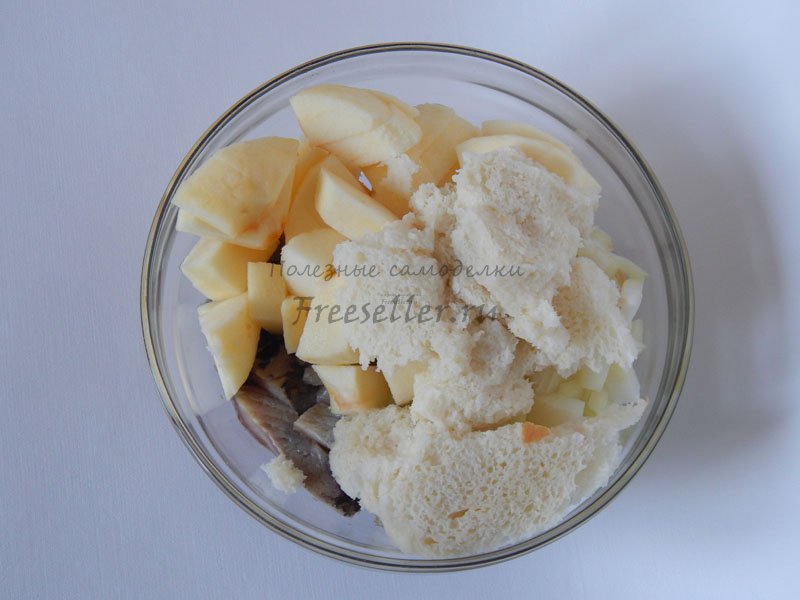 5. Добавляем хорошо отжатый белый хлеб.