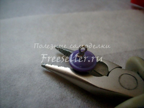 Вставляем в него бижутерный гвоздик. Отламываем излишек длины и загибаем гвоздик петелькой.