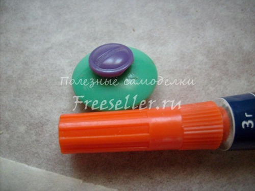 3. Вклеиваем в неё малую выпуклую пуговицу.