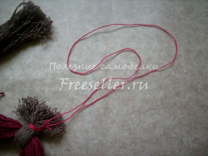 3. Третий жгутик закладываем между концами второго. Туго стягиваем их, перевязываем нитью - "туловище".
