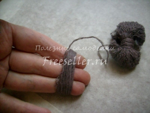 Туго стягиваем вместе концы толстого жгутика. Перевязываем их нитью. "Голова" готова.