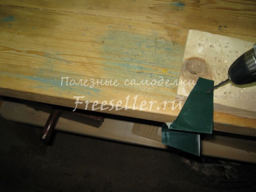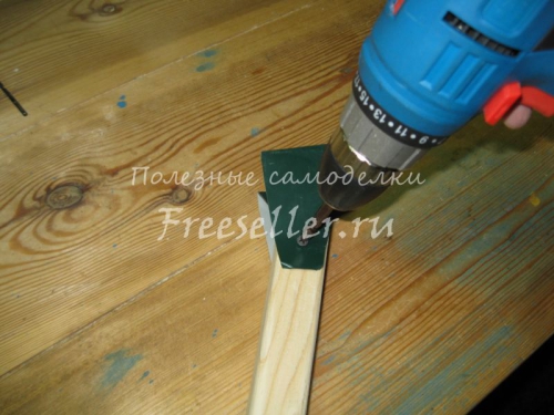 Затем сверлим с каждой стороны заготовки отверстия под шурупы сверлом диаметром 4 мм.