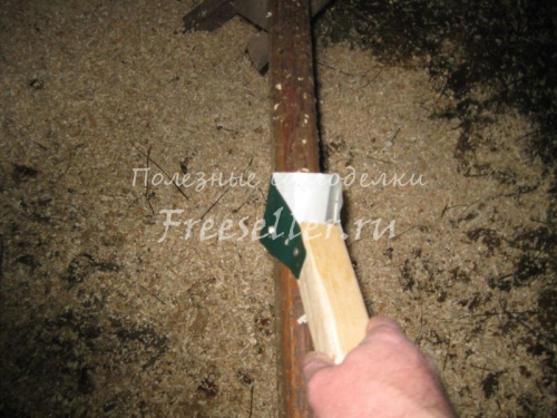 Чтобы рабочая часть держалась на рукоятке надежно, можно загнуть острые уголки и забить их молотком в деревянную рукоятку.