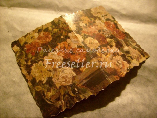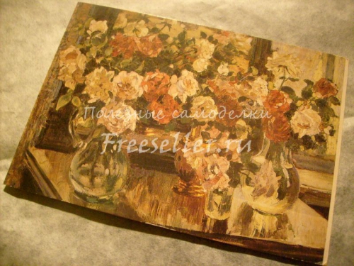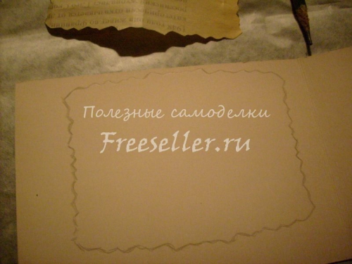 1. Карточку мы смастерим из старой открытки. Фигурно обрежем её по контуру, сложив вдвое.